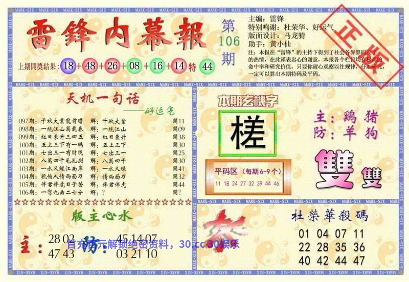 106期☆四字平特☆{呆若木鸡}开鸡33准 |