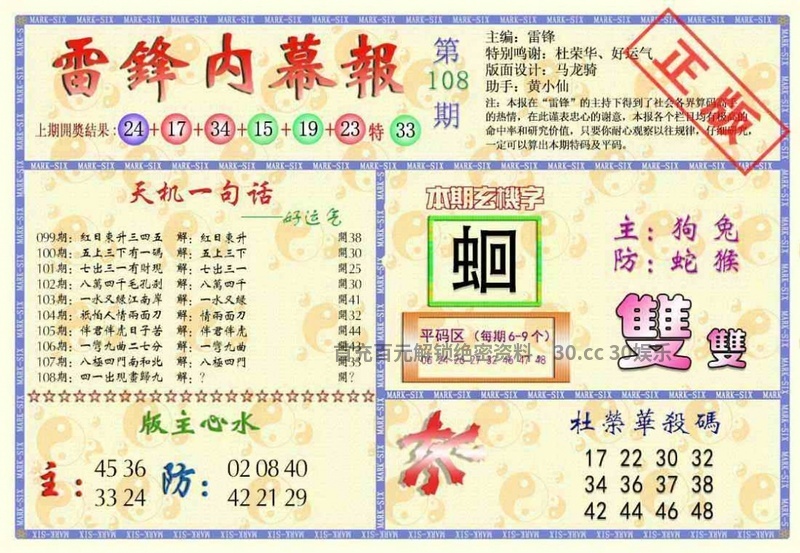 108期☆四字平特☆{佛口蛇心}开蛇01准 |
